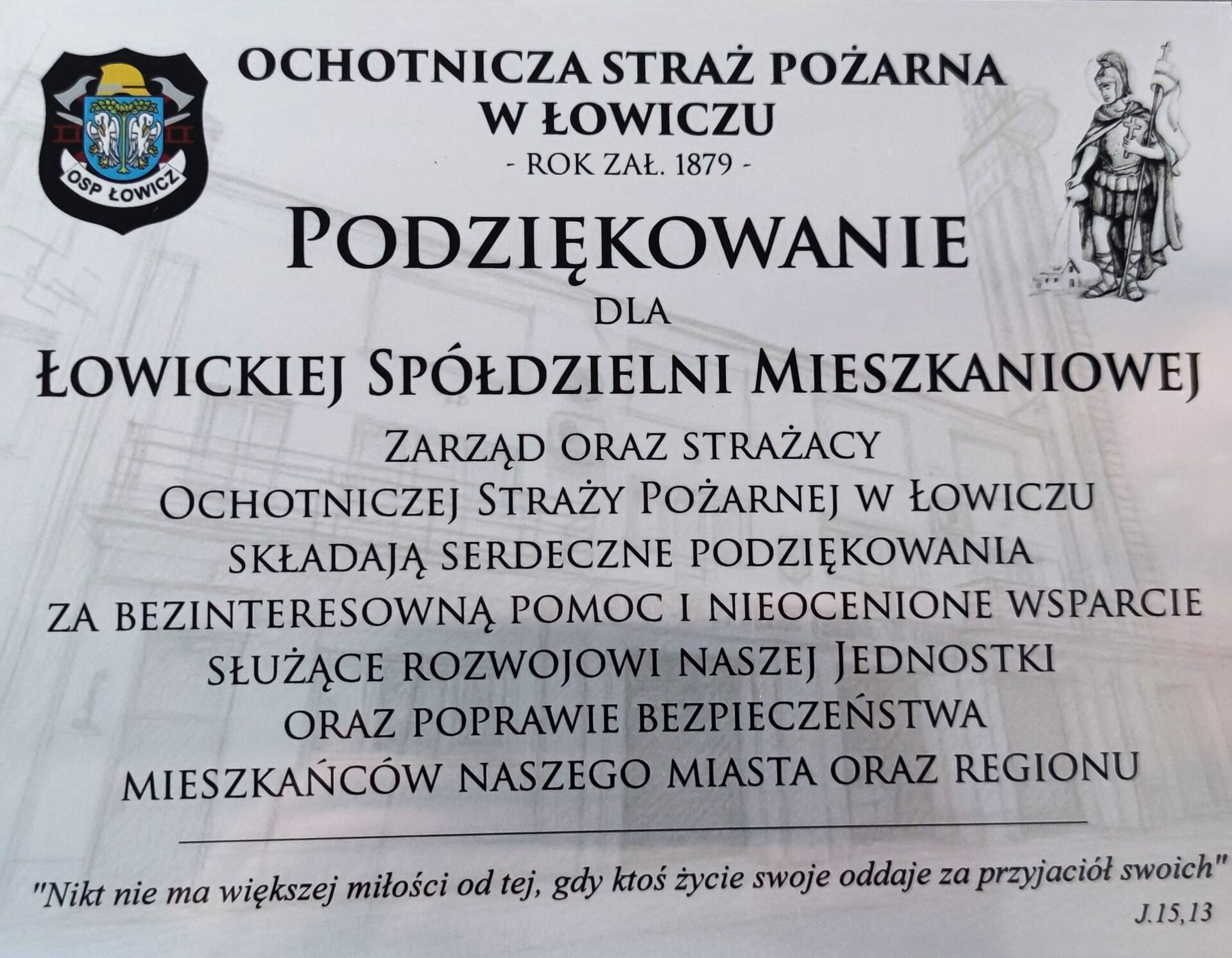 Łowicka Spółdzielnia Mieszkaniowa w poniedziałek (17 listopada) gościła w swoich progach delegację z jednostki Ochotniczej Straży Pożarnej w Łowiczu.