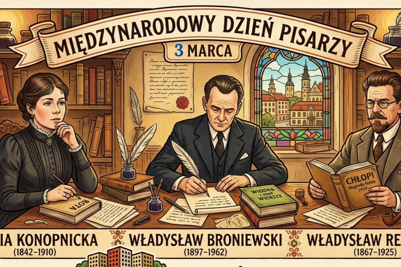 Na wtorek (3 marca) przypada Międzynarodowy Dzień Pisarzy. A warto wspomnieć, że troje wybitnych literatów patronuje osiedlom Łowicka Spółdzielnia Mieszkaniowa . Oczywiście chodzi tu o Marię Konopnicką (1842-1910), Władysława Styanisława Reymonta (1867-1925) i Władysława Broniewskiego (1897-1962). ...