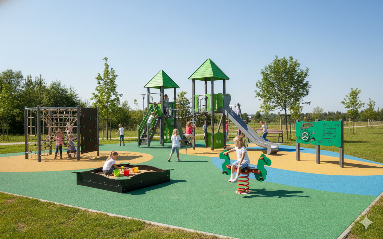 Pod wybranymi zabawkami wykonana zostanie bezpieczna nawierzchnia piaskowa, dzięki czemu korzystanie z placu stanie się jeszcze bardziej komfortowe i bezpieczne. Całość prac obejmie również roboty ziemne, korytowanie, niwelację terenu oraz uporządkowanie przestrzeni po zakończeniu inwestycji.