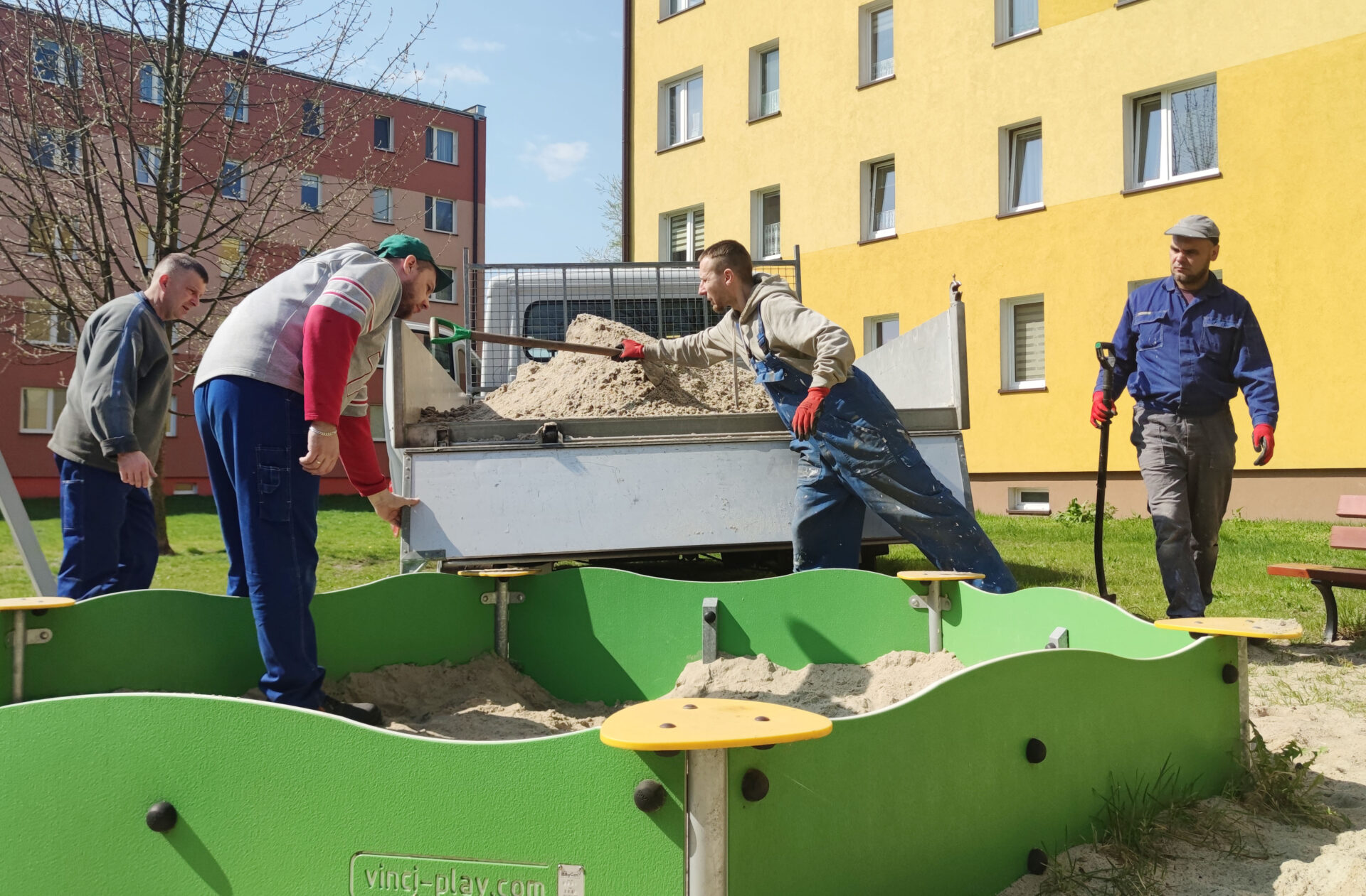 W tym tygodniu, w ramach ostatnich przygotowań do udostępnienia spółdzielczych placów zabaw, wymieniany jest piach oraz dokonywane są ostatnie drobne naprawy w miejscach, z których korzystają najmłodsi mieszkańcy ŁSM.